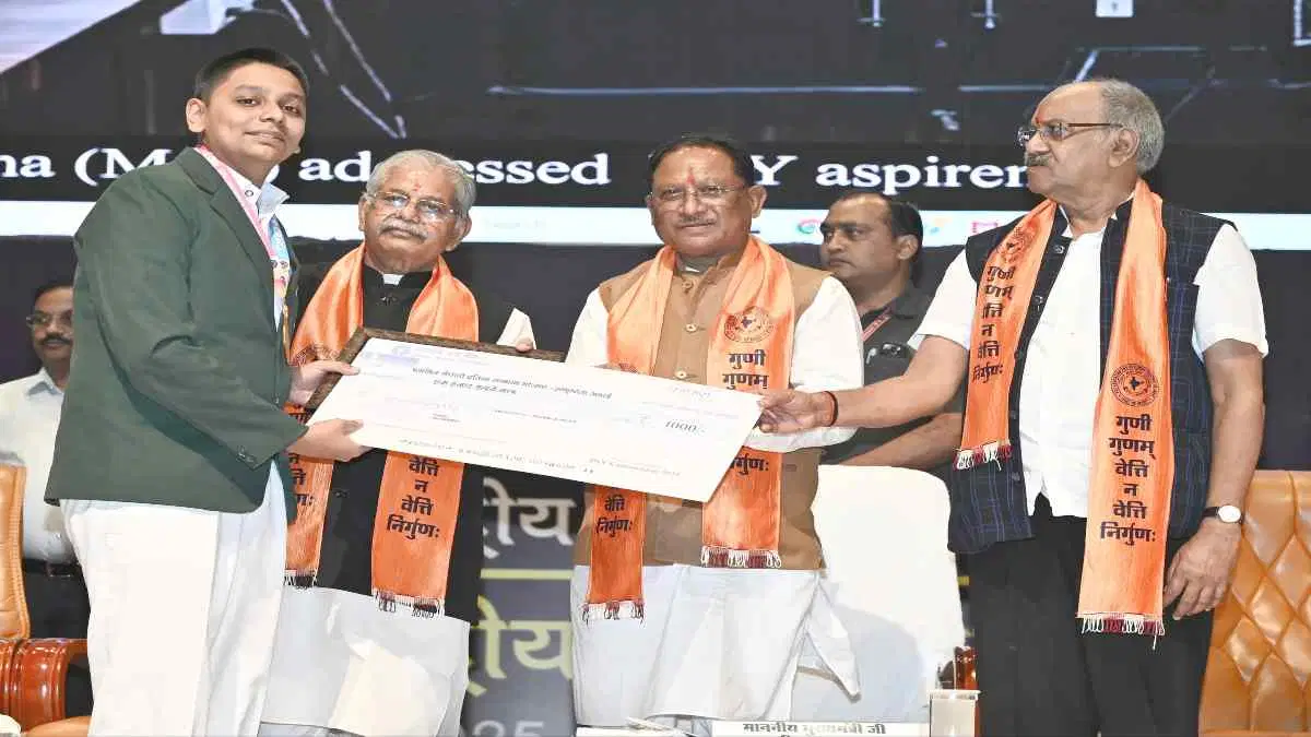 उन्होंने बताया कि प्रदेश में अब स्थानीय भाषाओं में शिक्षा, मेडिकल पढ़ाई हिंदी में, और गांव-गांव में स्कूल खुल रहे हैं।कार्यक्रम में रायपुर सांसद बृजमोहन अग्रवाल ने युवाओं को ‘विकसित भारत 2047’ का भविष्य बताया, वहीं विधायक धरमलाल कौशिक ने बहुभाषीय शिक्षा को सराहा।सीएम साय ने उत्कृष्ट कलाकारों को भी सम्मानित किया। चित्रकार राज सैनी ने पीएम मोदी और अटल बिहारी वाजपेयी की पेंटिंग भेंट की।कार्यक्रम में पीएसवाय अध्यक्ष डॉ. एस.के. मिश्रा सहित कई शिक्षाविद और गणमान्य अतिथि मौजूद थे।