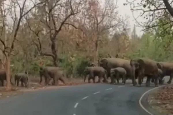 राजपुर में 35 हाथियों का आतंक, NH-343 के पास मचा हड़कंप; वन विभाग ने जारी किया अलर्ट