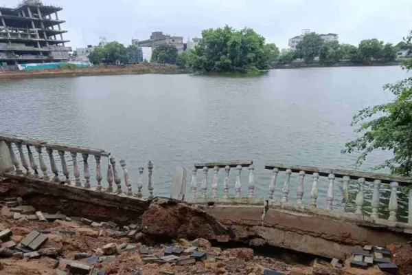 स्मार्ट सिटी की पोल खुली, करबला तालाब की बाउंड्रीवाल टूटी